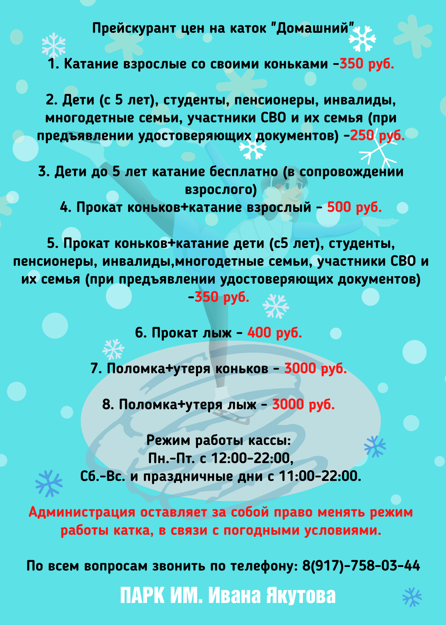 ЦЕНА НА КАТОК "ДОМАШНИЙ"